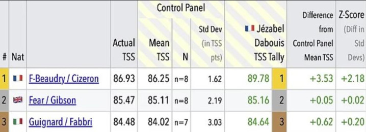 这位法国裁判给法国组合打出93.34分,是悉数评分中的最高值。