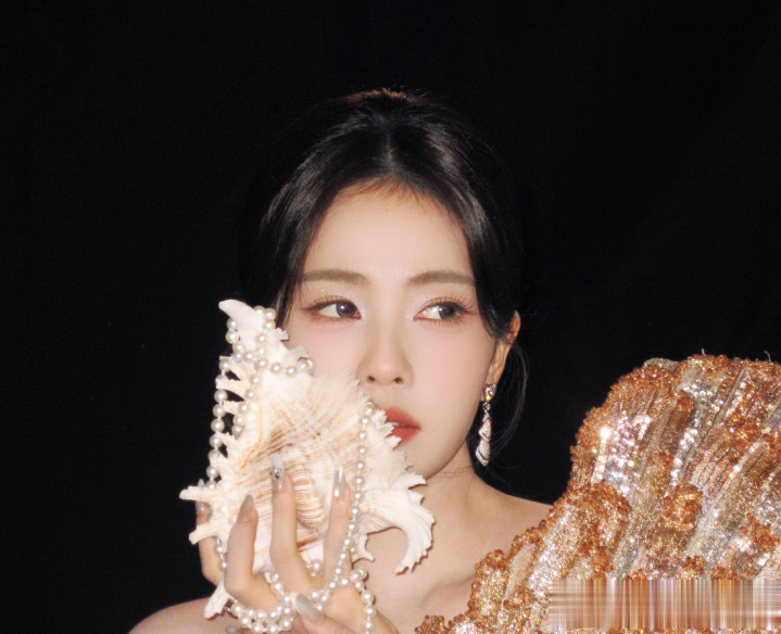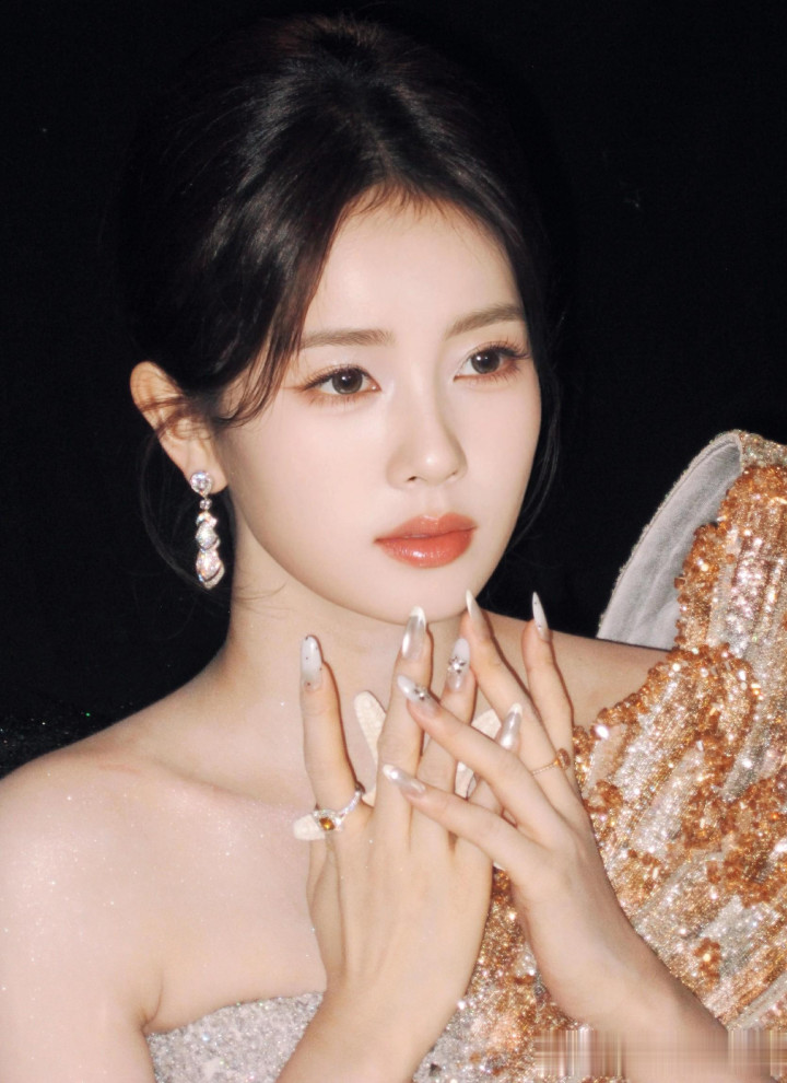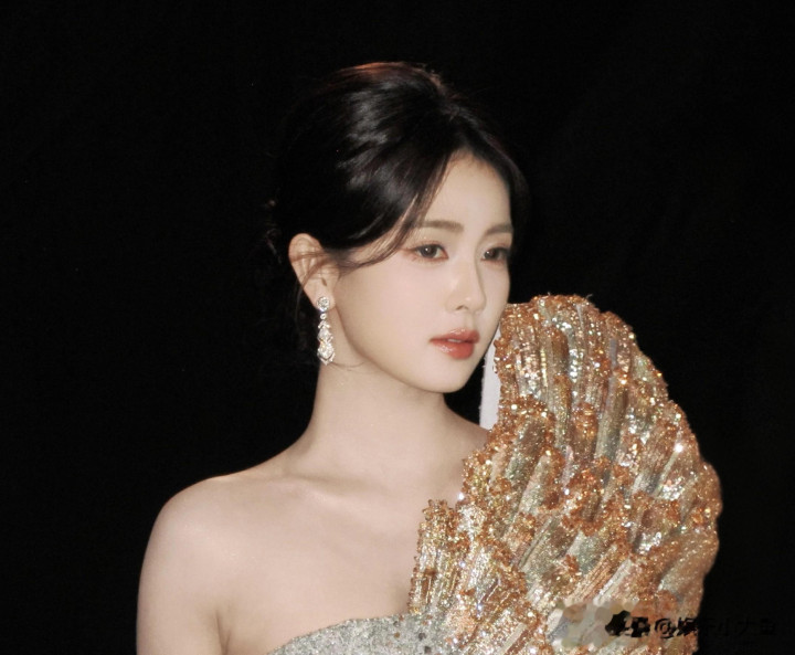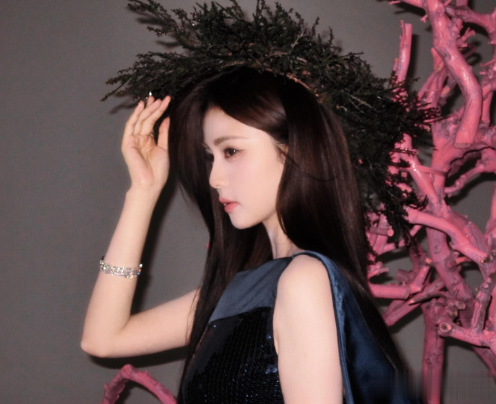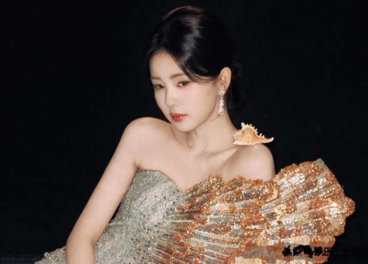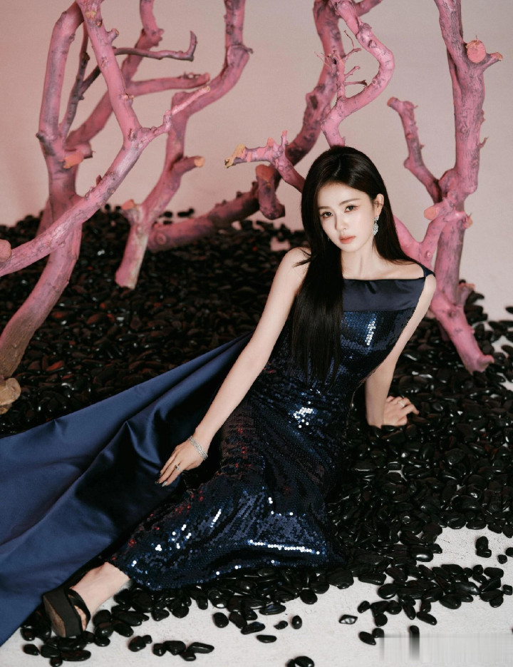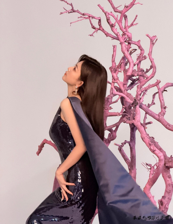 kaiyun sports米兰 穿蓝色亮片治服裙长发披肩好意思成焦点">