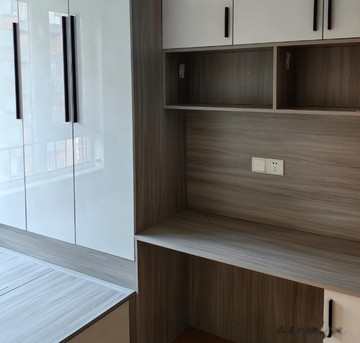 榻榻米自己的原材料就是木柴,一齐定制完不后,它书桌、衣柜、床板王人是木柴拼接,